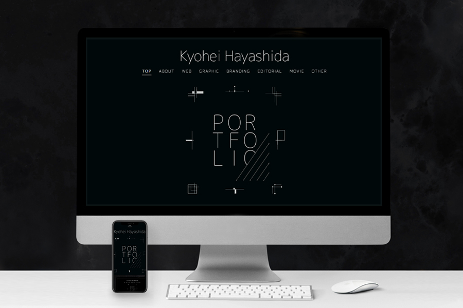 「ハヤシダ キョウヘイ」のポートフォリオサイト。 デザインからフロントエンド、WordPress導入まで自身で制作。 Design / HTML5 / CSS3 / WordPress